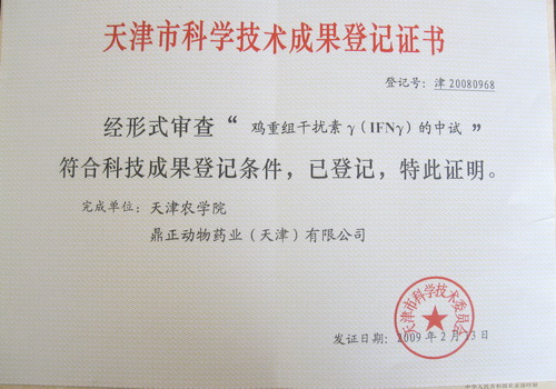 鼎正干擾素的研發(fā)成功被評為“天津市科學(xué)技術(shù)成果”